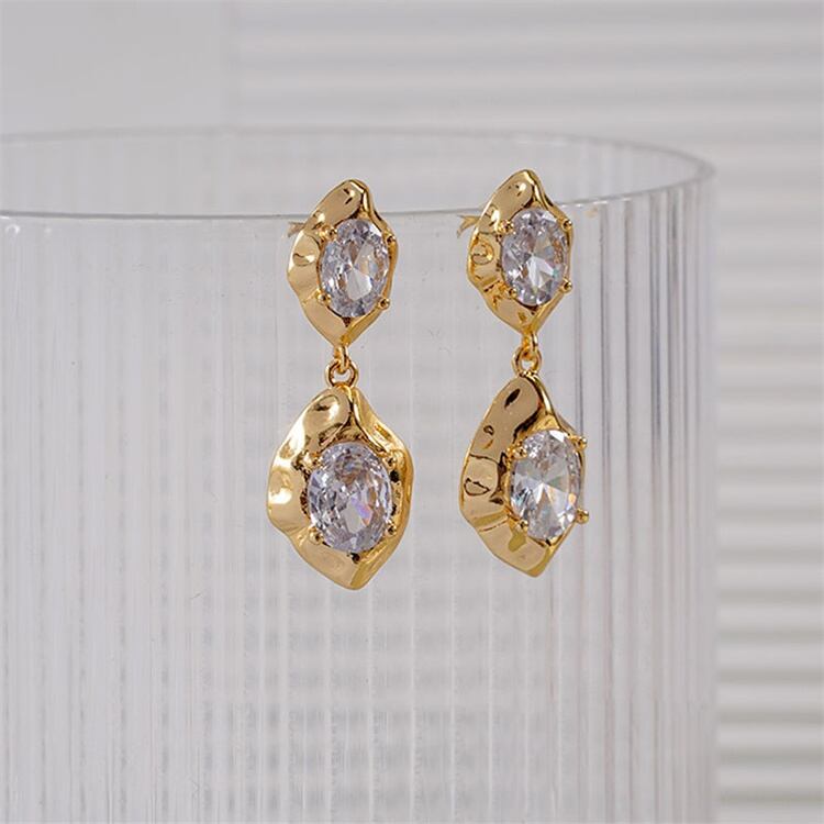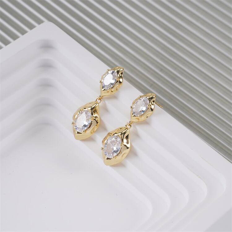 ◎【送料無料】ヨーロピアンテイスト ジルコニア フリンジ ピアス 通勤 幾何学 デザイン