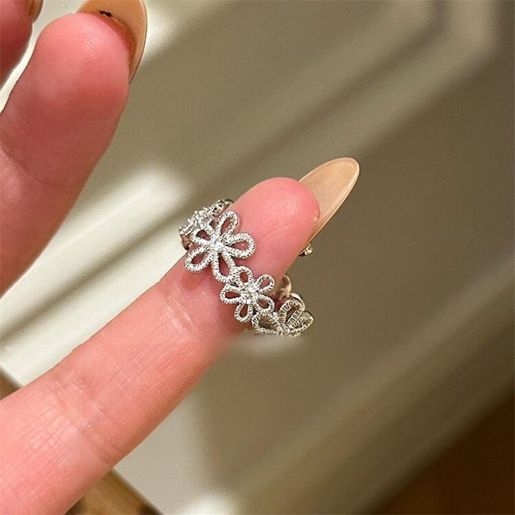 可愛いレース花リング 幅広タイプ 繊細な作り 女性に人気のアクセサリー