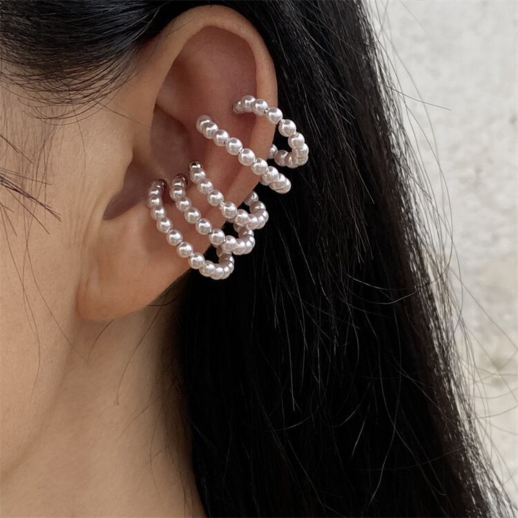2025年新作・耳穴不要の多列パール・耳骨用クリップ式イヤーカフ