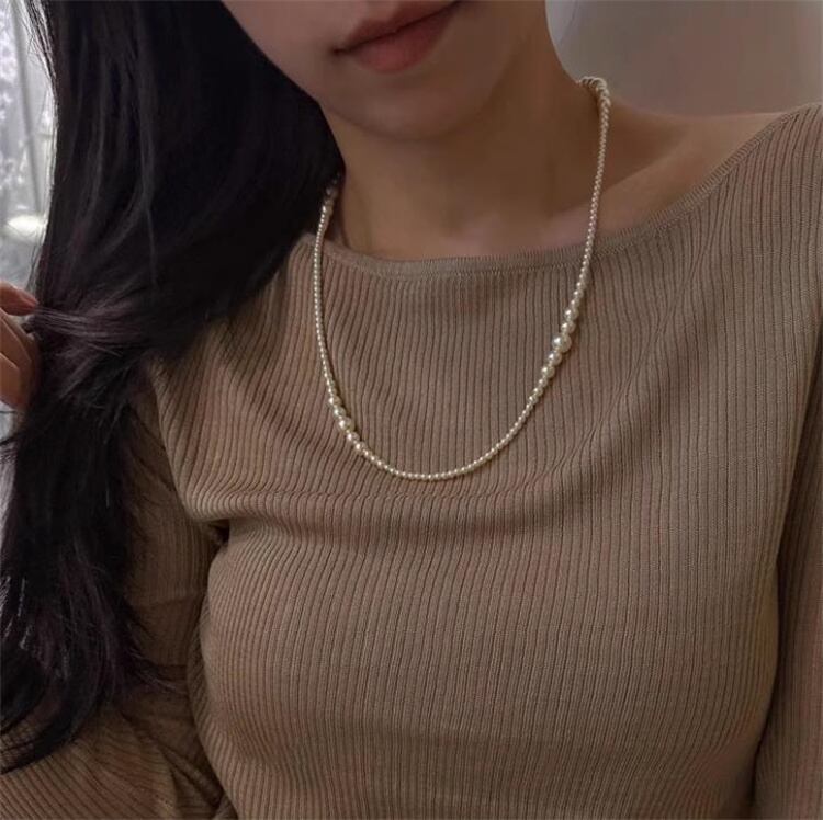 秋冬新作 アーティフィシャルパール ロングチェーン ニットコーデネックレス
