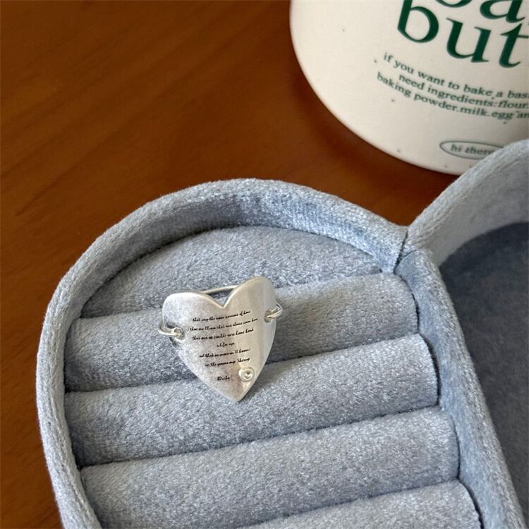 太めサイズの特徴的リング 指先に目立つハート文字アクセント