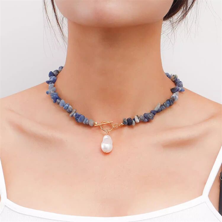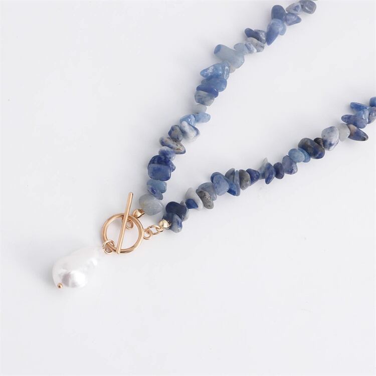 個性的な異形真珠が「一見するだけで印象的」!青い松石のアクセントで,欧米風のクールさを引き出すネックレス