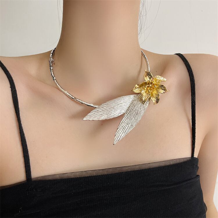 鈴蘭の可憐な花と葉の彫刻がキュートなネックレス;ヴィンンテージ調メタリックカラーが顔周りを明るく♪ 軽量設計で長時間付け心地快適! ワンピースやキャミソールとの相性抜群; プレゼントにも喜ばれる上質感です∽注意事項∽