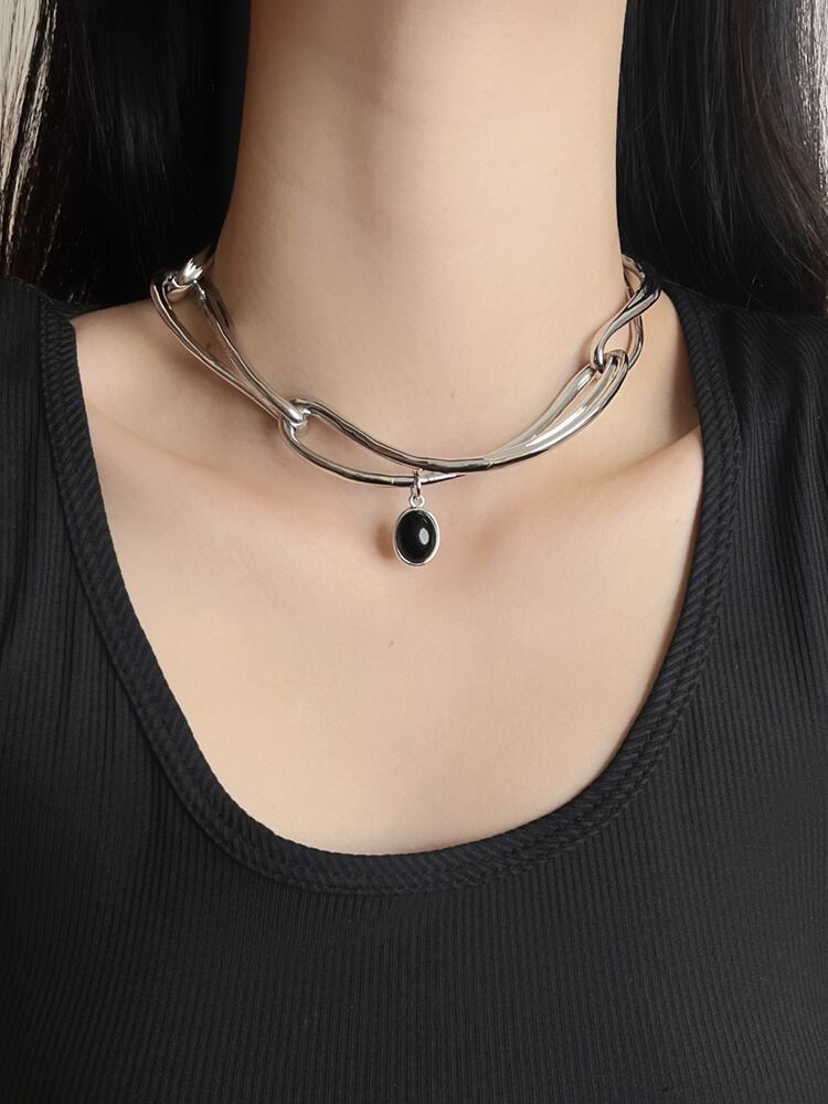 ◎【送料無料】海の石 チョーカー 金属チェーン 幾何模様 ギフトアイテム