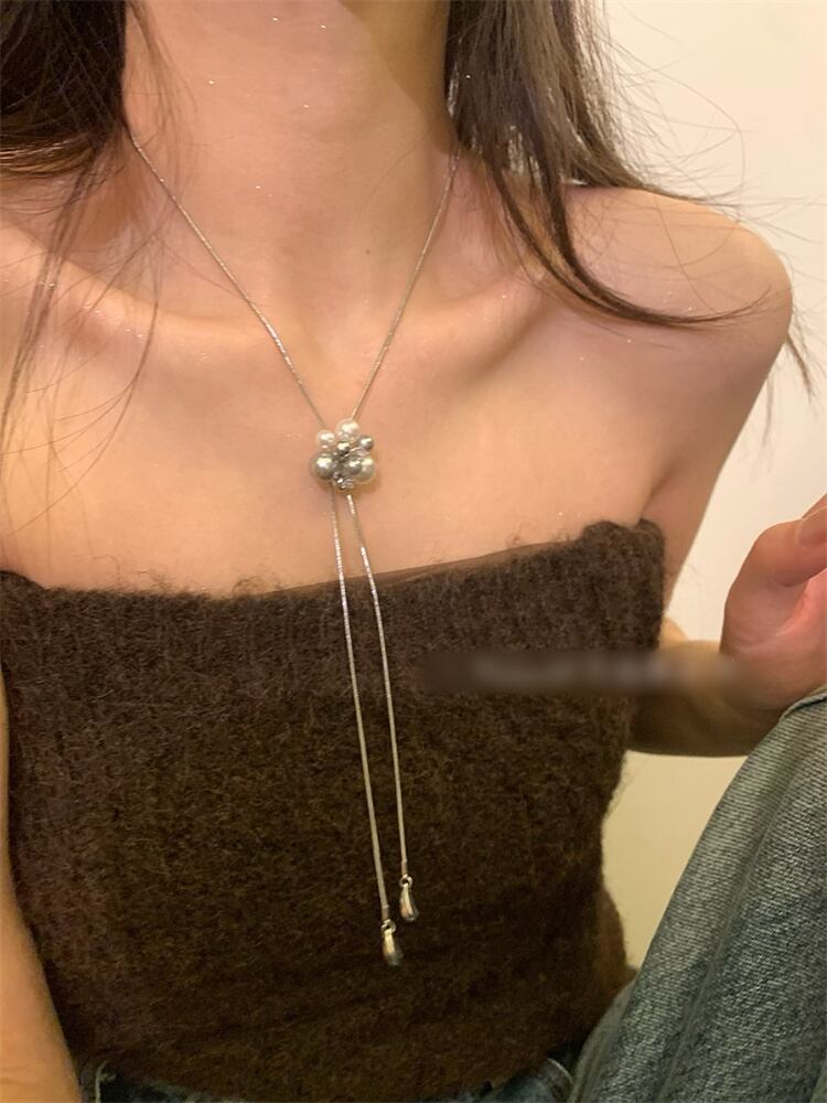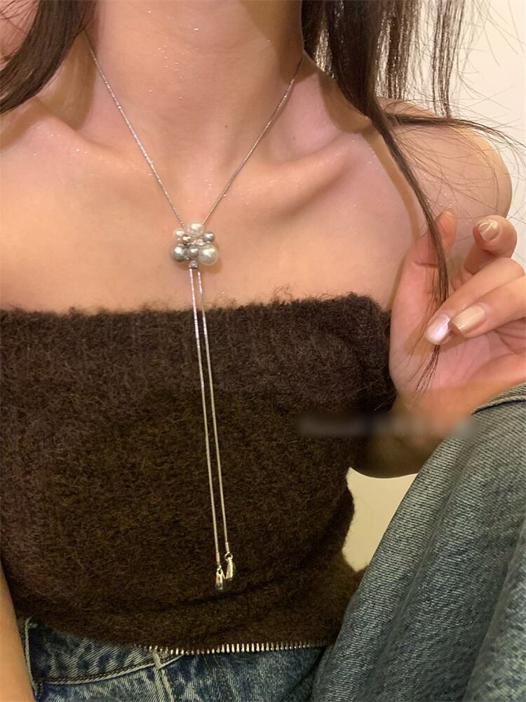 サイズ可変 真珠調 ドロップネックレス スネークチェーン ロングタイプ 個性的アクセサリー
