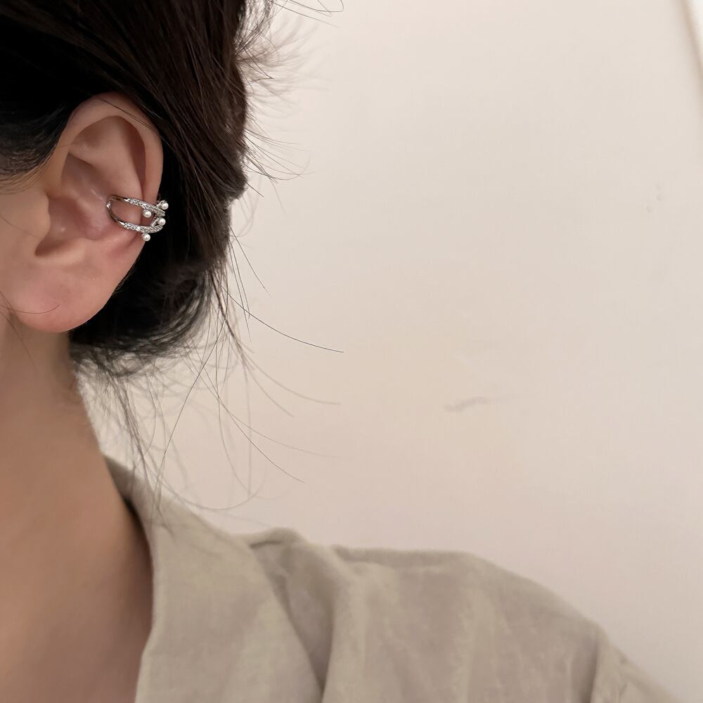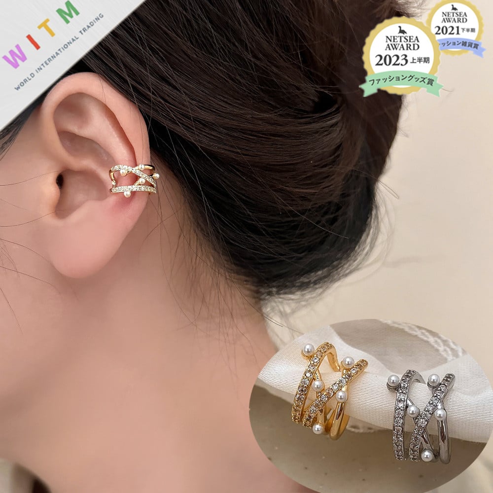 ◎【送料無料】パール ラインストーン イヤーカフ 耳飾り イヤークリップ 片耳 金属アレルギー対応 レディース