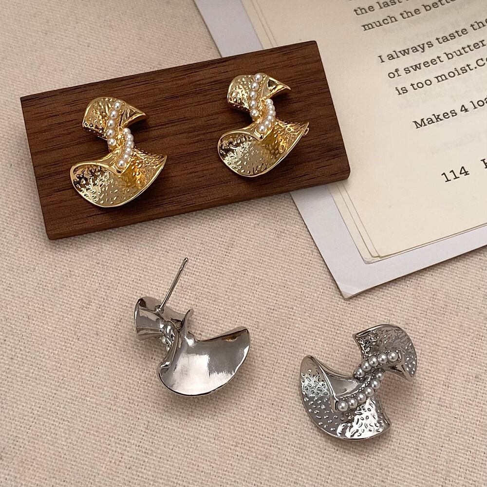 ◎【送料無料】扇形 パール ピアス 耳飾り 金属アレルギー対応 S925 アクセサリー 高級感 レディース 上品