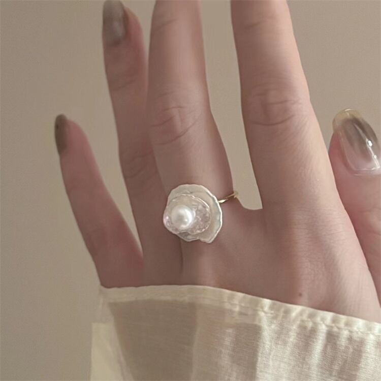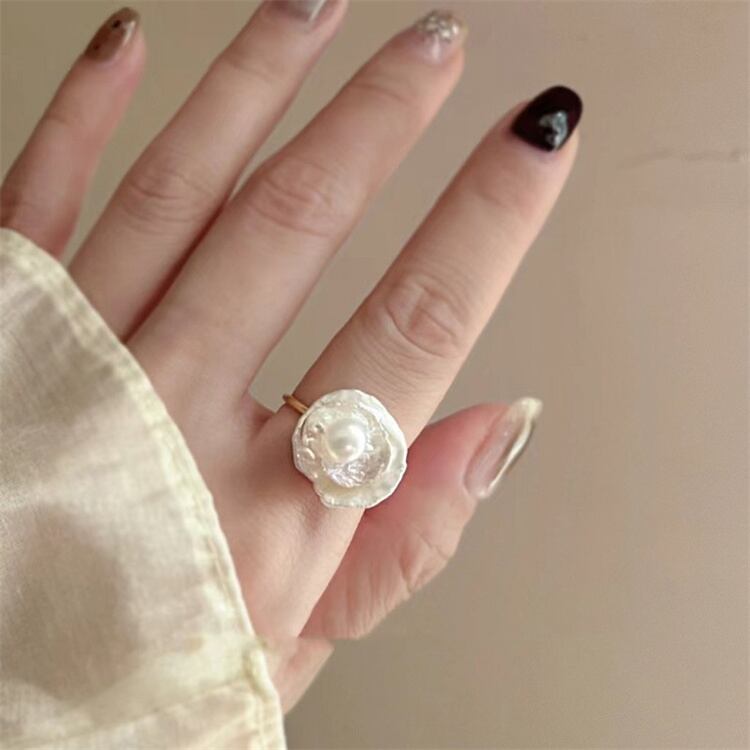 開閉式で使いやすいバロックパールリングです; レトロな雰囲気と変形パールが魅力、プレゼントに喜ばれます! シンプルな服とも相性抜群で、特別感を添えてくれます∽注意事項∽