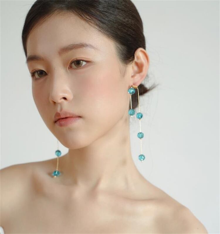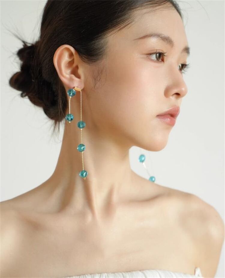 揺れる水晶が耳元に小さな幸せを届けます;6gの軽さで、つけ心地はまるで羽のように。ブルーは清涼感、パープルは大人可愛い印象に。シンプルな装いも華やかに変える、特別な日の相棒にどうぞ∽注意事項∽