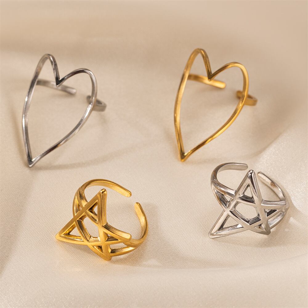 ◎【送料無料】ハート 星 指輪 リング 開口指輪 レトロ レディースファッション エレガント ステンレス アクセサリー