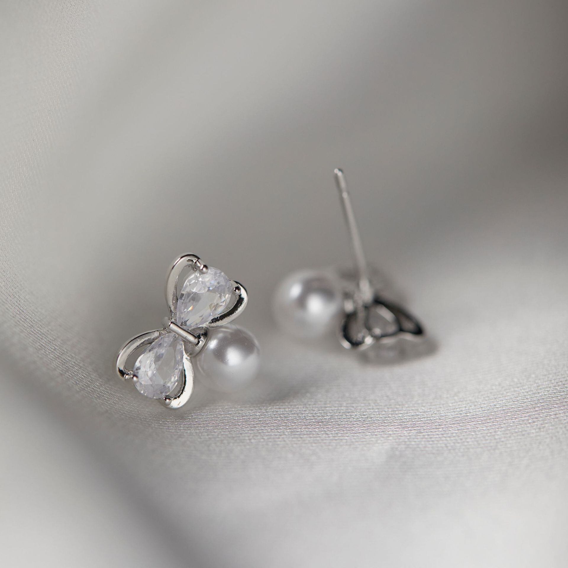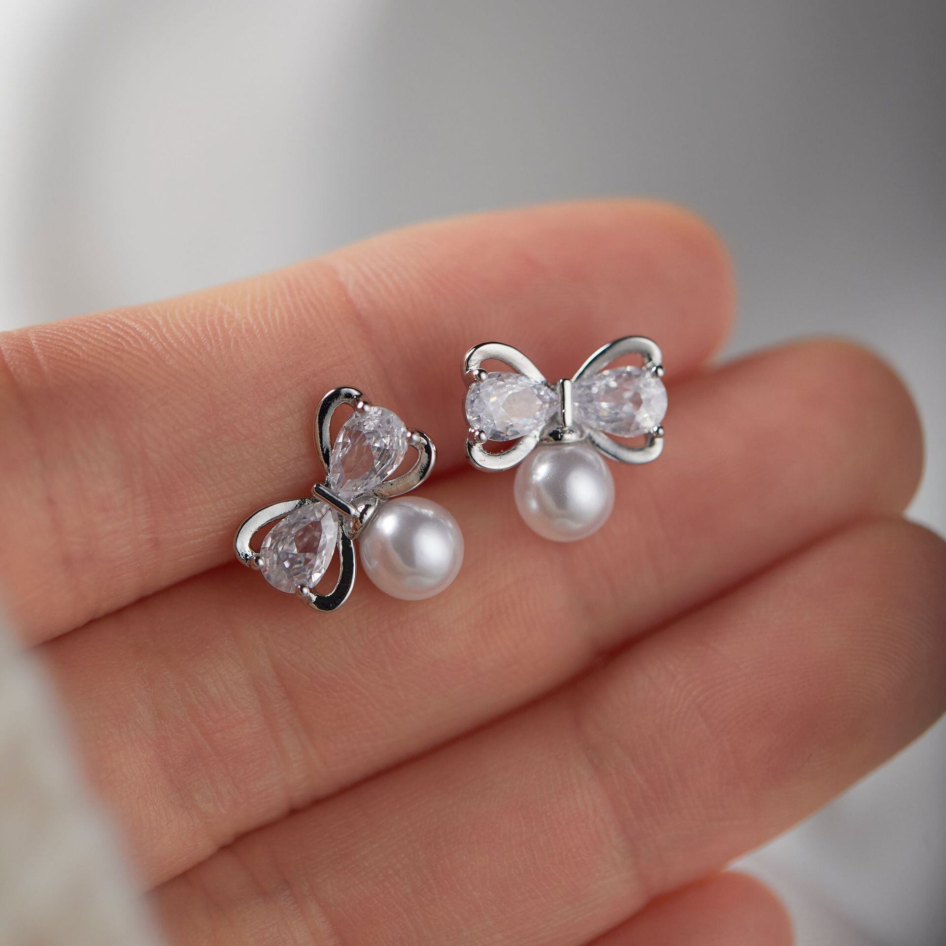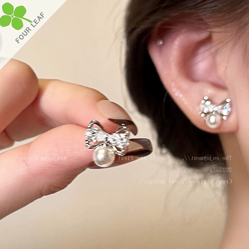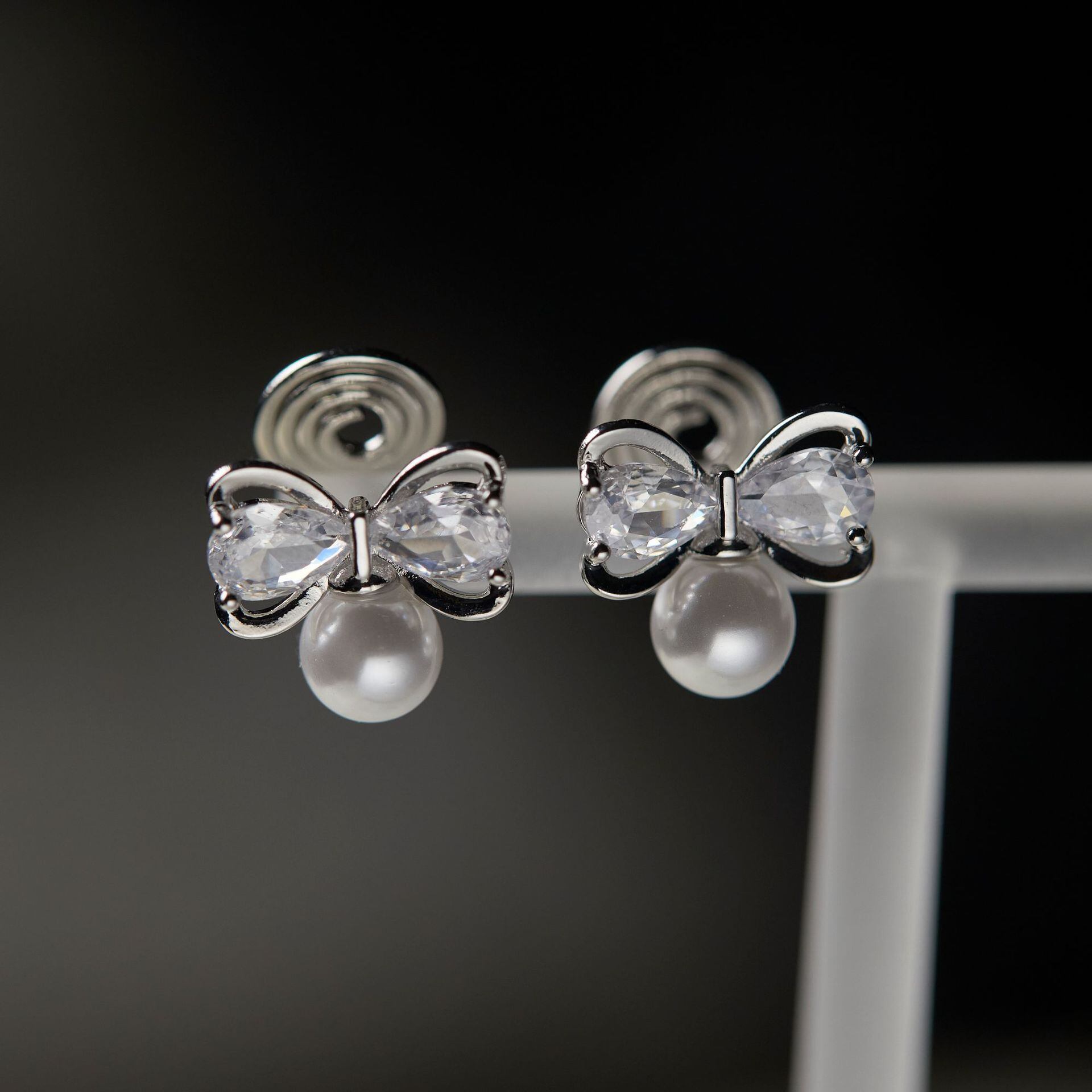◎【送料無料】蝶結び ピアス パール付き イヤークリップ 耳飾り アクセサリー 上品 レディース 大人可愛い