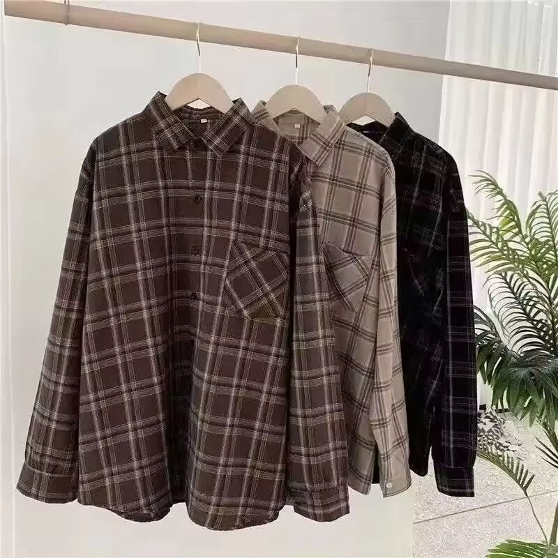 【送料無料◎】 秋/冬レトロ長袖チェックシャツ韓国ファッション万能秋チェックシャツゆったり万能トップス
