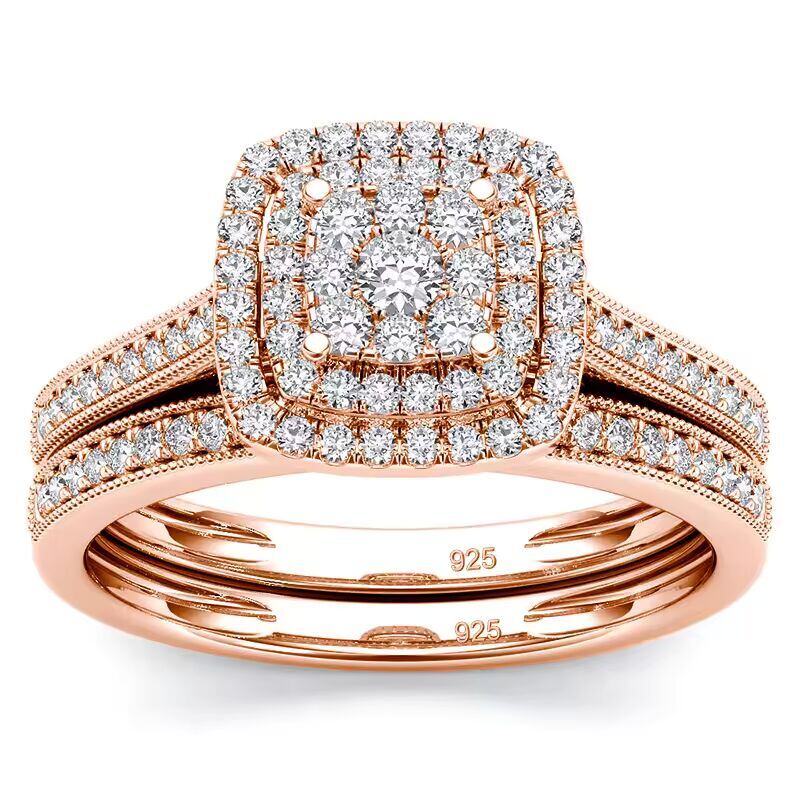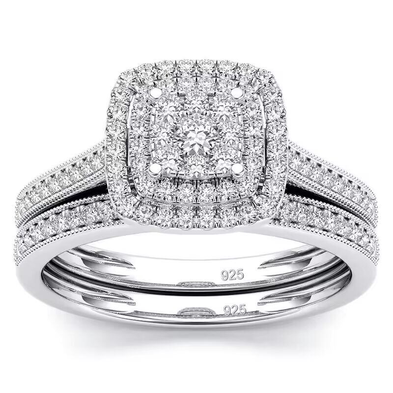 【送料無料◎】 Szjinao 2 個モアッサナイトリングセット女性用オリジナル 925 シルバーウェディングジュエリー高級婚約レディース記念日ギフトトレンド