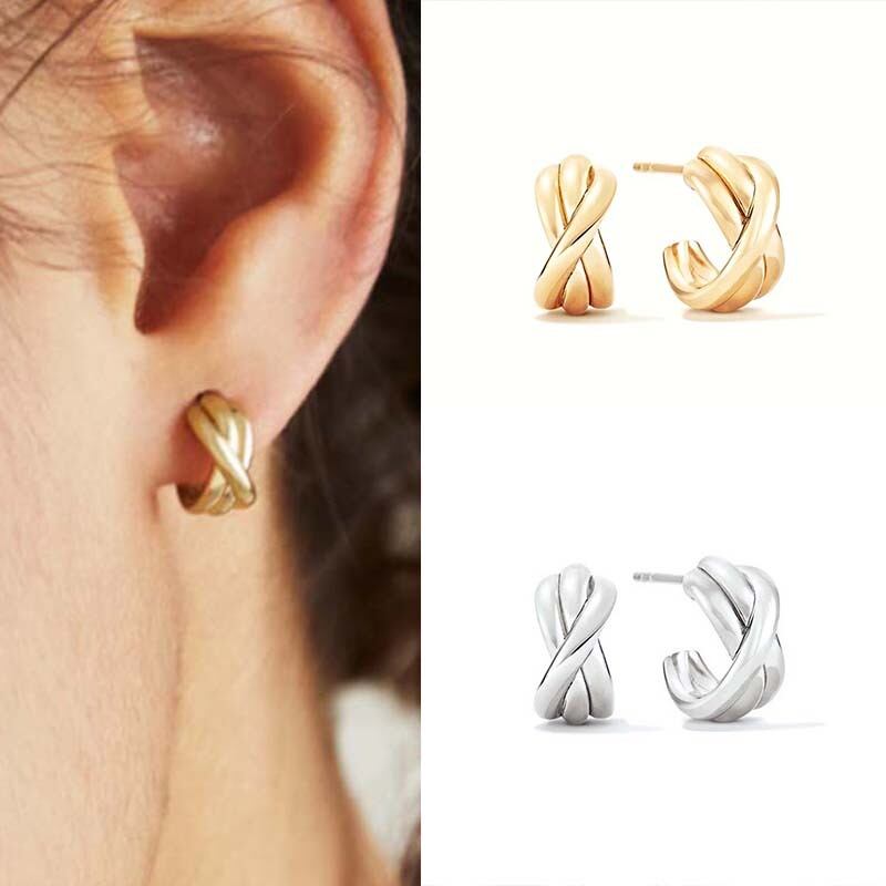 送料無料 925 スターリングシルバー耳針ミニマリズムクロワッサンジルコンスタッドピアス人気ジュエリー女性の誕生日プレゼント イヤリング 指輪 銀 AE00135556320691884
