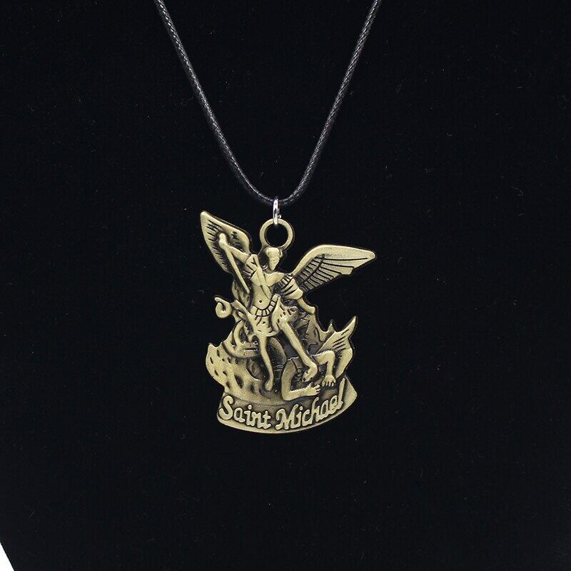 送料無料 ヴィンテージ聖書天使聖ミカエルペンダント St.Michael Pray Us ペンダント & ネックレス 3D 大天使天使の翼イエスネックレス レース ビンテージ AE335677764645529255