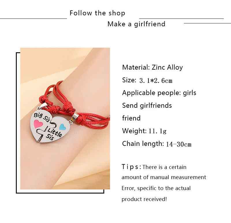送料無料 2 ピース/セットビッグリル Sis ブレスレットガールズベストフレンズハートシェイプペンダント腕輪 Bff 今までパーティージュエリーアクセサリーギフト AE335677787382671147