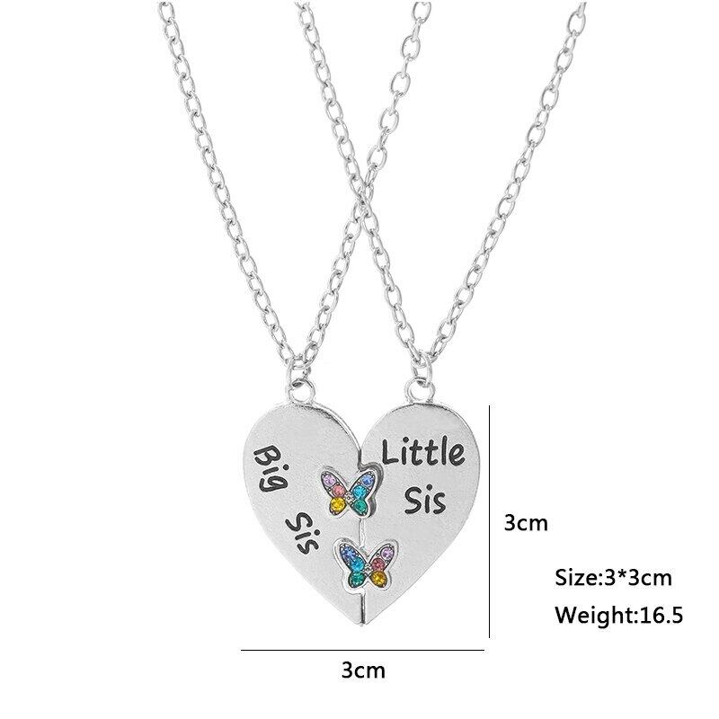 送料無料 2 個のトレンディな姉妹のペンダントネックレスハート蝶の形のカラフルな象眼細工のジルコンセーターチョークチェーンジュエリーギフト レース AE335677760011517629