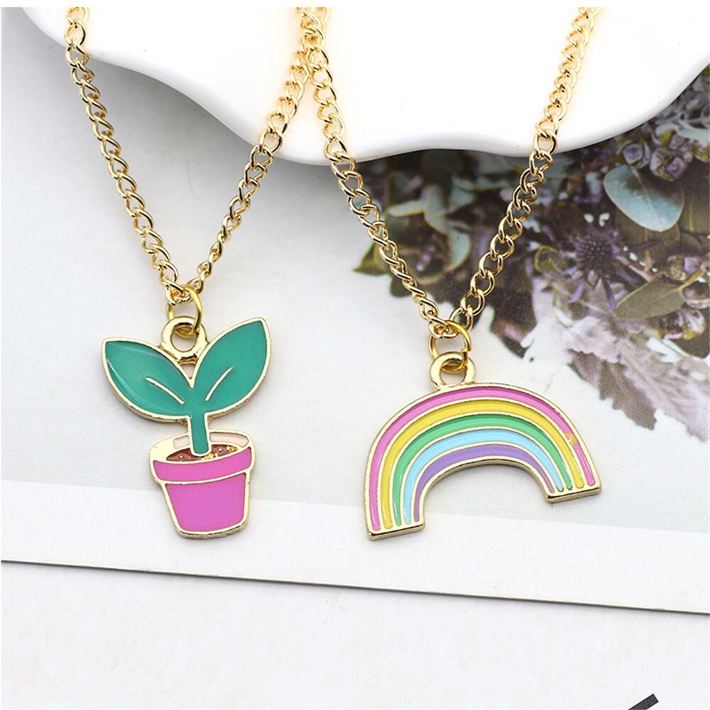 送料無料 トレンディなレインボープラントハートペンダントネックレスレディースメンズティーンズカラフルペンダントビーズチェーンネックレスパーティージュエリーギフト レース AE335677763308932561