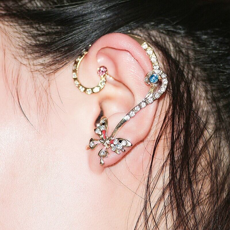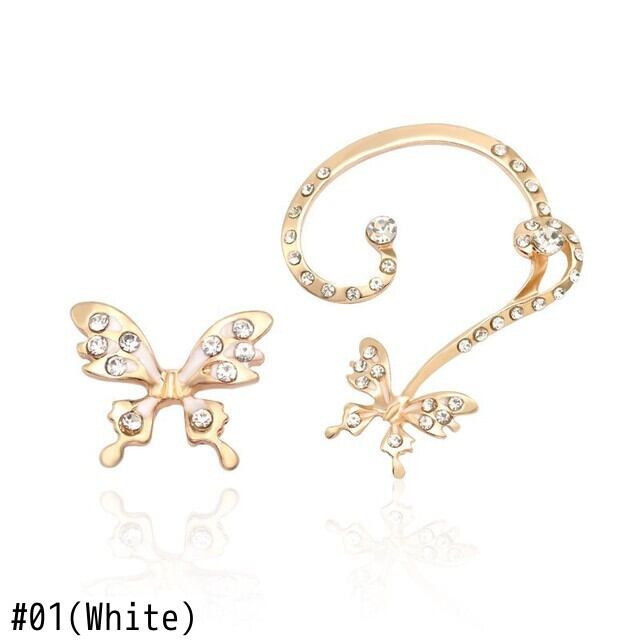 送料無料 かわいい蝶のイヤリング白黒カラーセットラインストーン耳クリップチャーム女性ホリデージュエリーガールギフト Brincos 無料 ホワイト ブラック 大人ガーリー スウィート キュート カジュアル 指輪 AE335677727474714934