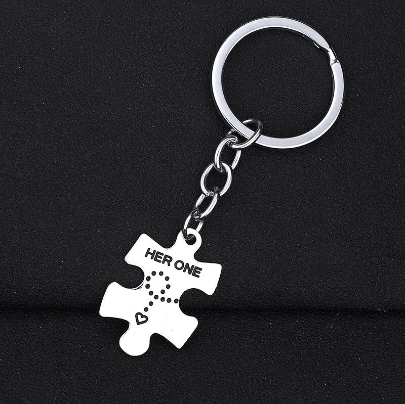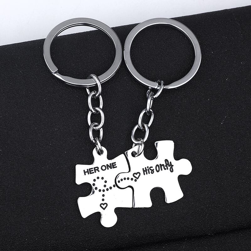 送料無料 2 ピース/セットパズル彼女 1 彼だけネックレスキーホルダー恋人ハートチャームペンダントキーホルダーカップル Jewlery 愛好家コラル Chaveiro レース チェーン AE335677718058254444