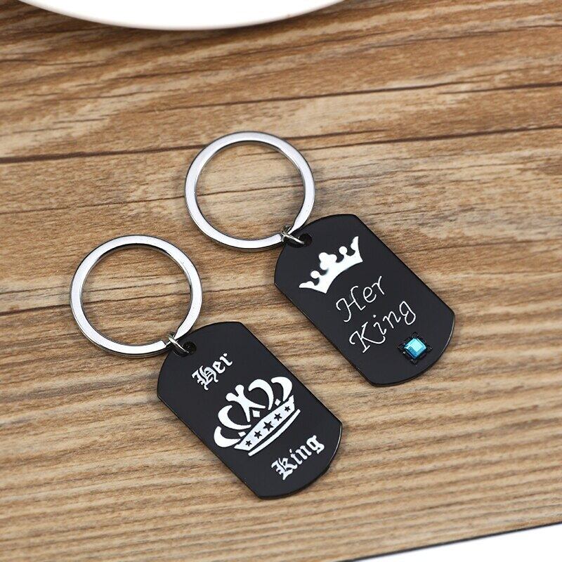 送料無料 彼女の王彼の女王カップル キーホルダー ブラック メタル クリスタル クラウン キー チェーン リング ホルダー バレンタインデー クリスマス ギフト Chaveiro 指輪 AE335677762542657563