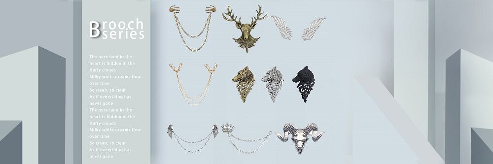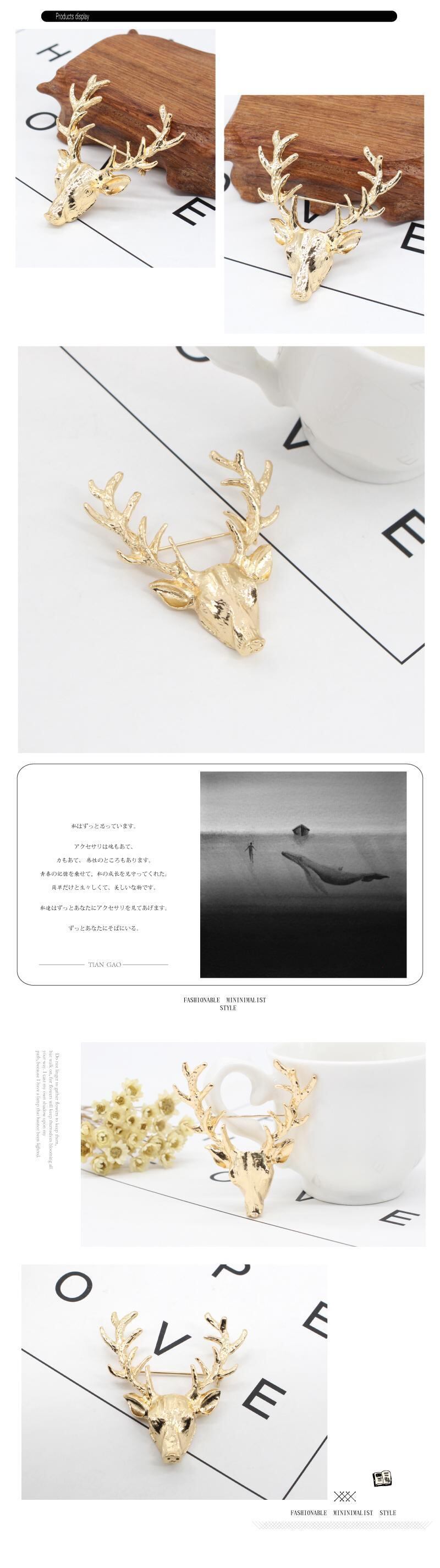 送料無料 ゴールデンヘラジカの角ブローチ合金クリック鹿ヘッドピンブローチ男性と女性の金属動物ジュエリーギフト錦織り AE335677769182286834
