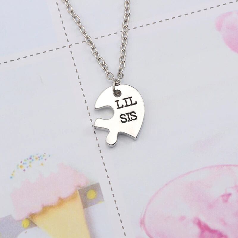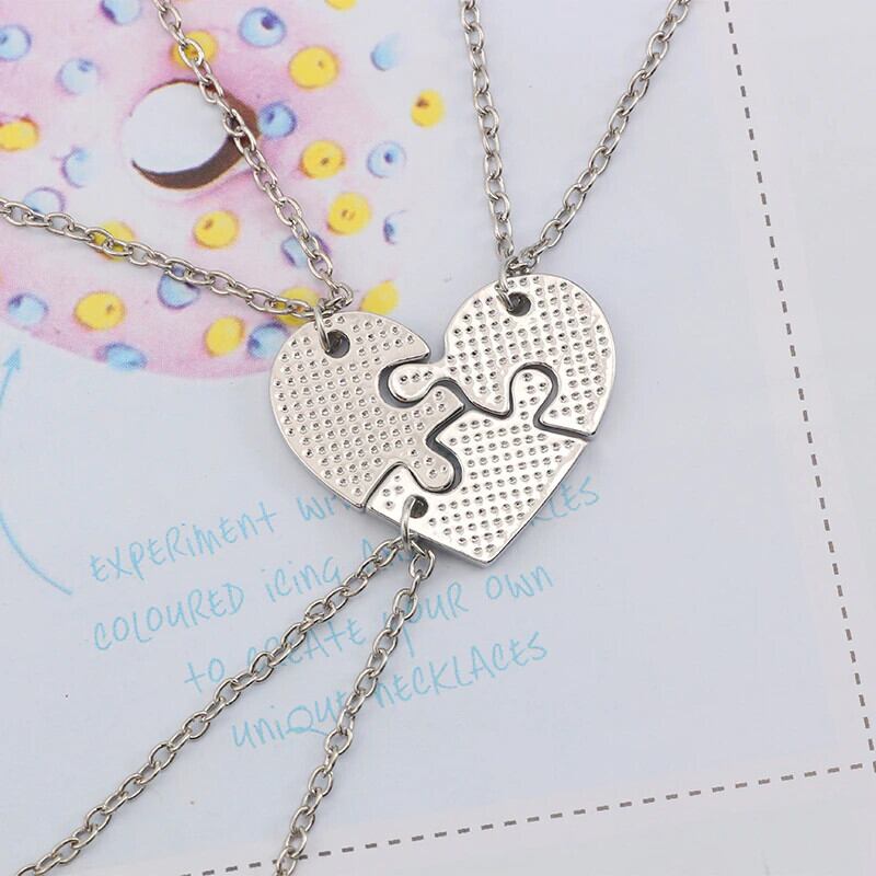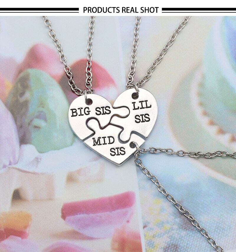 送料無料 Big Mid Lil Sister 3ピース/セット ステッチパズル ハートペンダントネックレス 親友ネックレス ファミリーギフトアイテム レース AE335677727802595368