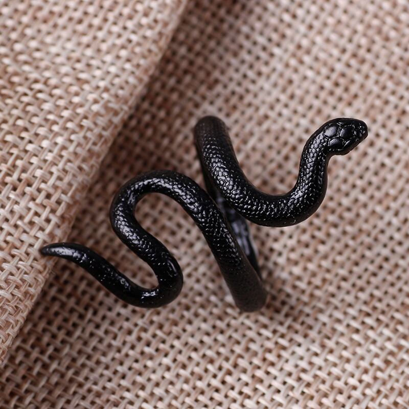 送料無料 トレンディ Anillos レトロヘビ型リング男性黒調節可能なオープニングメタルリングヒップホップロック男性と女性のジュエリー ブラック アジャスタブル 指輪 AE335677726083474054