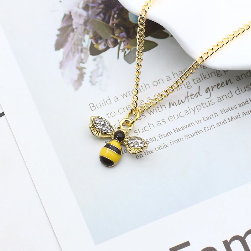 送料無料 トレンディな黄金の蜂のペンダントネックレスラインストーン動物の羽のネックレス女性ジュエリー Collares 無料 レース AE335677758971737763