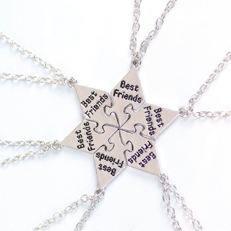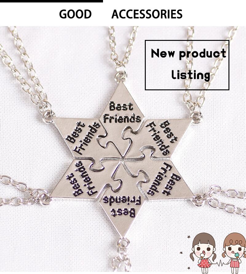 送料無料 6ピース親友ネックレス六角形の手紙ペンダントbffチョーカー男性と女性友情ネックレスジュエリーアクセサリー レース AE335677719030103496