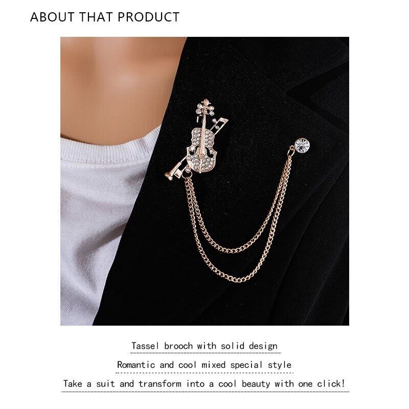 送料無料 バイオリン金属ラインストーンブローチクリエイティブ亜鉛合金電話首輪男性ジュエリーアクセサリーパーティー誕生日 Gif ピン AE335677748750945137
