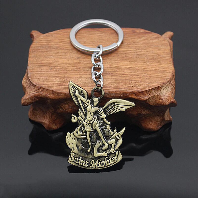 送料無料 パンクヴィンテージ聖書大天使聖ミカエルペンダントキーホルダー聖ミカエル天使の羽イエスキーチェーンカーホルダーキー Chaveiro ビンテージ AE335677727186015156