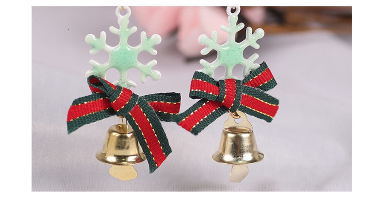 送料無料 クリスマススノーフレークイヤリング女性多色オプション赤弓ベルペンダント合金素材ガールジュエリーギフト レッド リボン 指輪 AE335677788109068269
