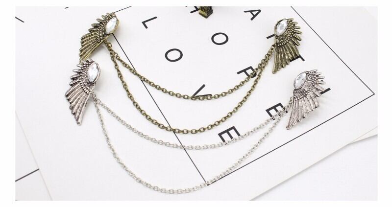 送料無料 ヴィンテージクリスタル天使の羽のブローチ襟ピンゴシック動物の翼二層 Tel チェーンピンブローチ女性錦織り ビンテージ AE335677732307878239