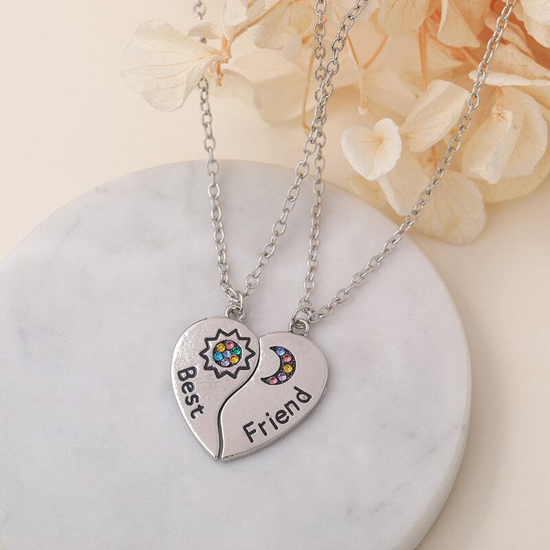 送料無料 2psc 親友ペンダントネックレス女男日月象眼細工のカラフルなジルコン姉妹チョークセーターチェーンアクセサリーギフト レース AE335677738896573894