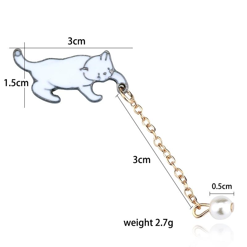 送料無料 かわいい漫画猫ブローチ女性動物キャッチボールエナメルピンバッジパールラペルピンクリスマス年ギフト無料 大人ガーリー スウィート キュート カジュアル 真珠 AE33567774335984289