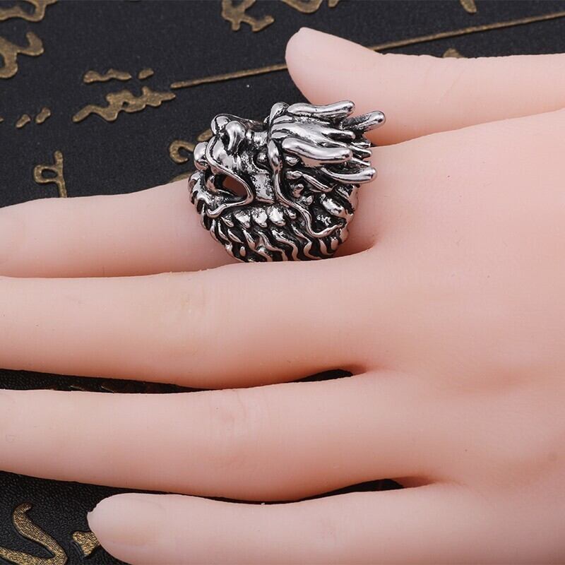 送料無料 ゴシックヴィンテージドラゴンヘッドリング男性パンクドラゴン再生ビーズリング流行の動物バイカージュエリークリスマスギフトと操作 Masculino 指輪 ビンテージ AE335677711795742070