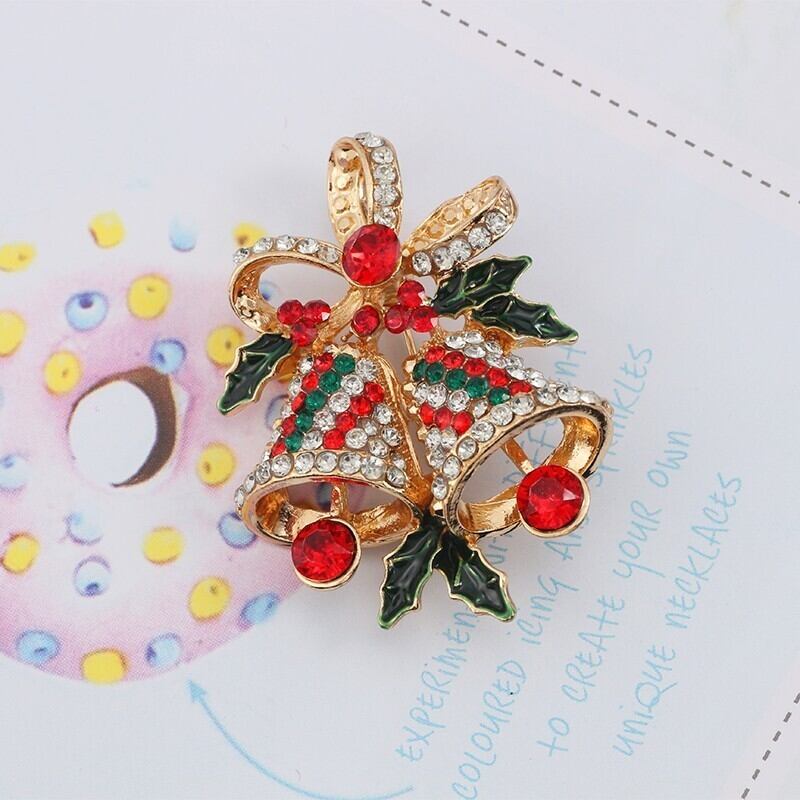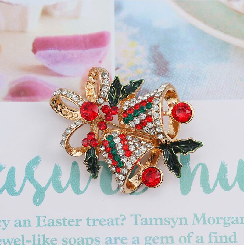 送料無料 クリスマスブローチ女性冬色クリスタルエナメルブローチ弓ベルピンジュエリーアクセサリーギフト リボン ウィンター 冬物 AE335677760359048428