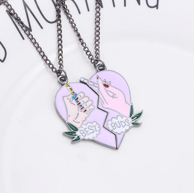 送料無料 2 ピース/セットスプライス親友今までカップルネックレス最高芽ライターとタバコブロークンハート形のペンダントネックレス レース AE335677733312205975