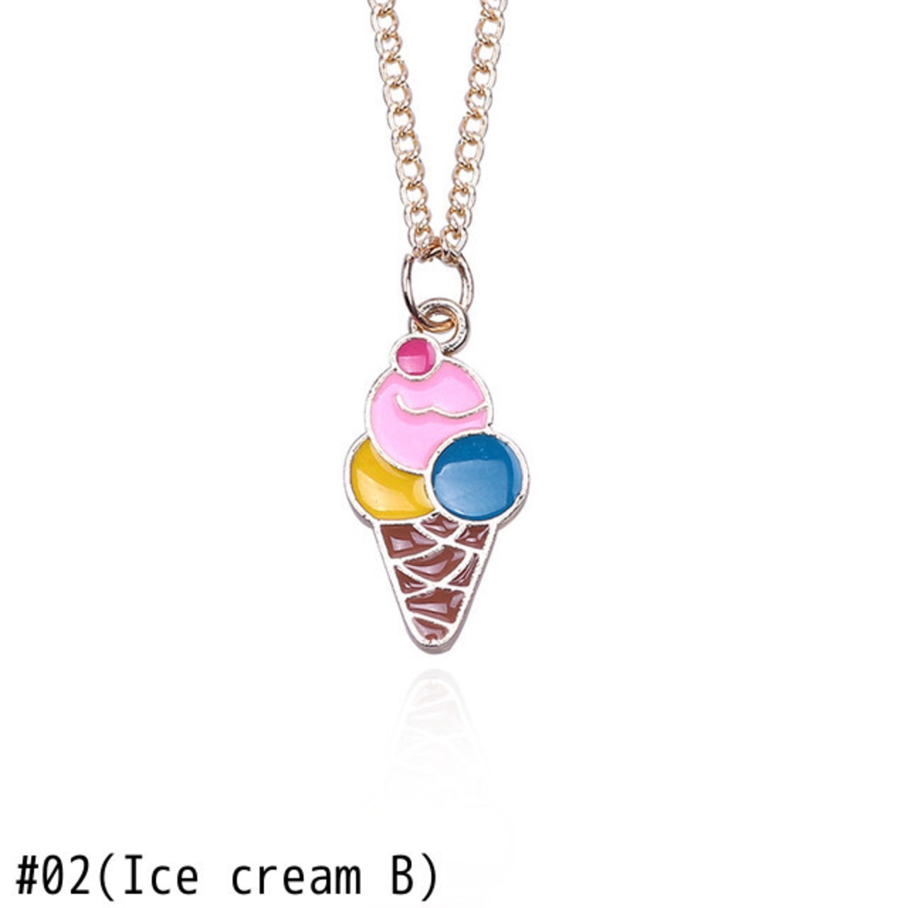 送料無料 食品ミニチュアアイスクリームペンダントネックレスエナメル金属親友今まで bff クリエイティブ女性ジュエリー無料 レース AE335677757796573451