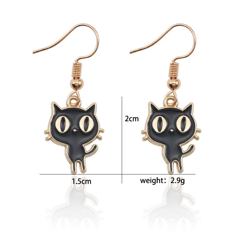 送料無料 かわいい猫のイヤリング女性エナメルブラックホワイトラッキーキャットイヤリングブラブラ漫画小型動物イヤリングジュエリー Brinco 大人ガーリー スウィート キュート カジュアル 指輪 AE335677772469939261