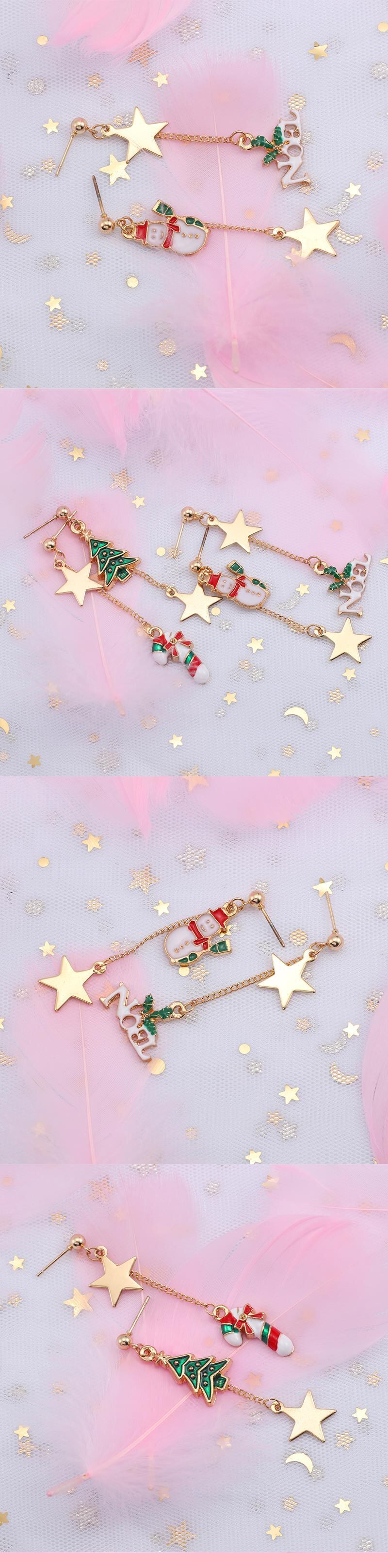 送料無料 トレンディスタークリスマスツリー雪だるまロング Tel イヤリング女性シックな非対称スタッド Earin パーティーギグクリスマスジュエリーギフト Brinco 指輪 AE335677759330479283