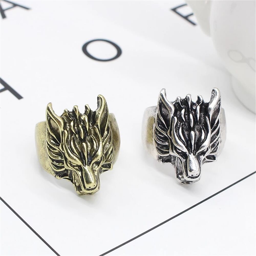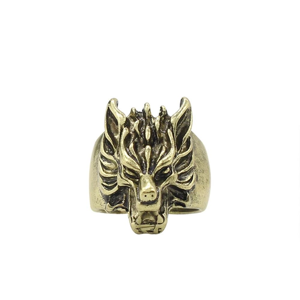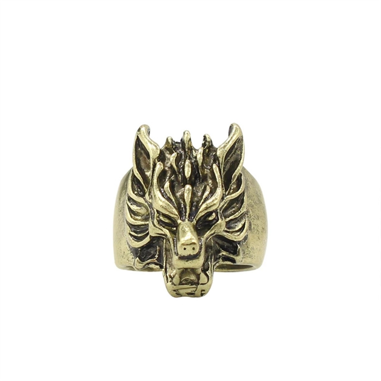 送料無料 パンク動物リング男性スチームパンクドラゴンブロンズリングヴィンテージジュエリーウルフヘッドカクテルパーティーリングギフト 指輪 ビンテージ AE33567777505835686