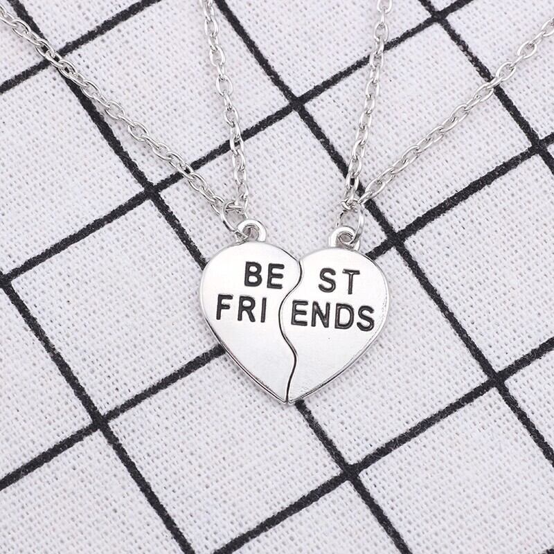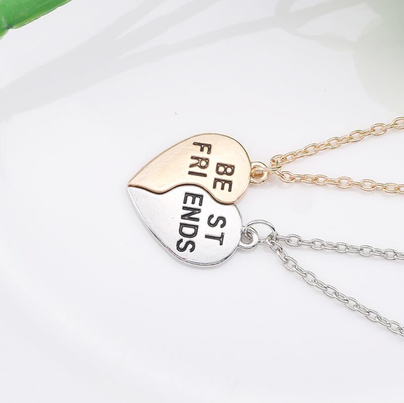 送料無料 2 ピース/セット親友ペンダント金属ブロークンハート BFF ネックレス女性友情ジュエリーアクセサリーギフト Collares 無料 レース AE335677749778167261