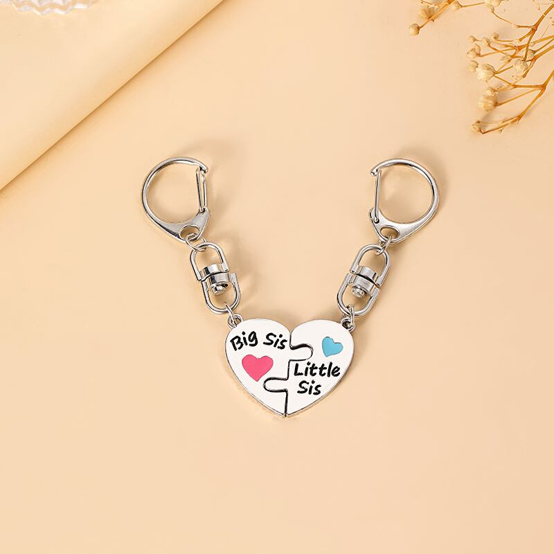 送料無料 2 ピース/セット姉リトル Siste キーホルダーラブハートクリスタルキーチェーン家族亜鉛合金カップルパーティージュエリーアクセサリーギフト AE335677788185413116