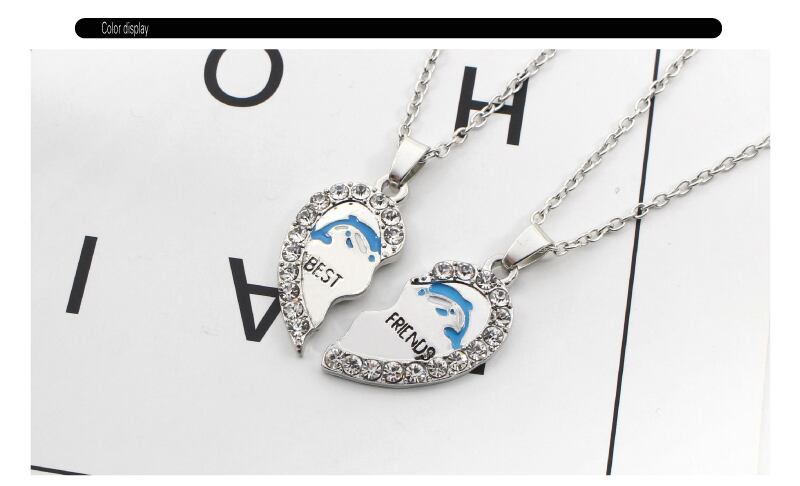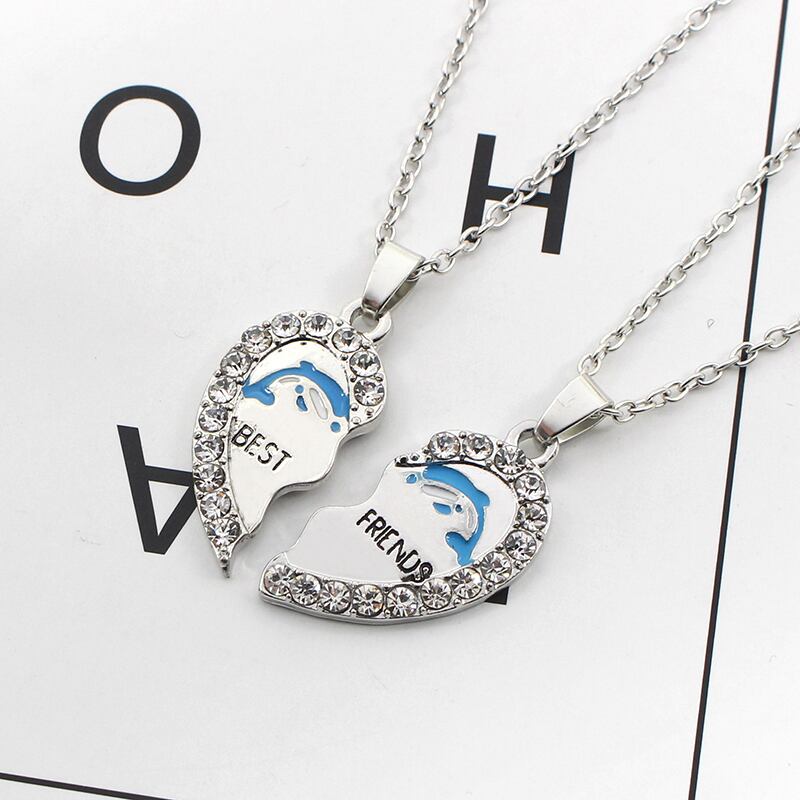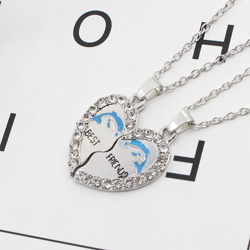 送料無料 2020 2 親友ネックレスステッチかわいいイルカハートペンダントネックレス BFF 友情ジュエリー誕生日ギフト レース 大人ガーリー スウィート キュート カジュアル AE335677764105749406