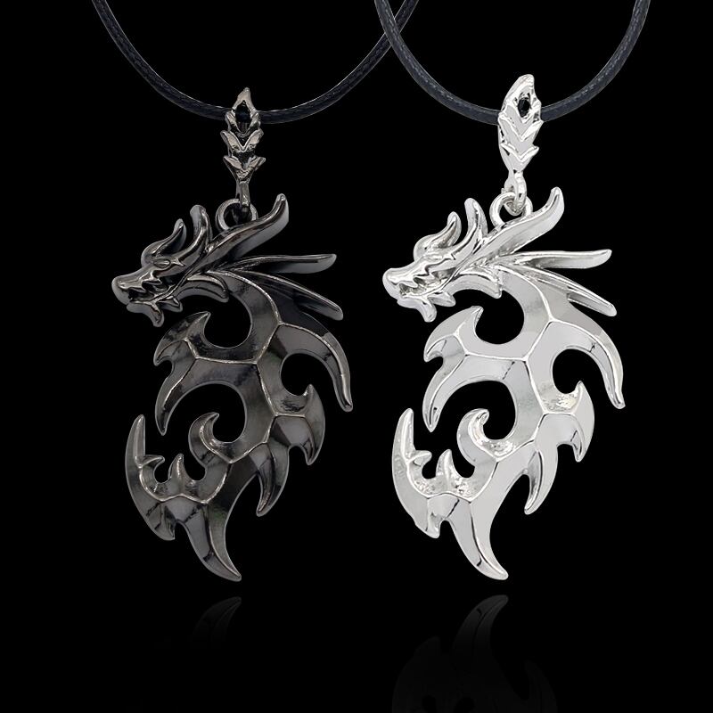 送料無料 中国風の男性ネックレス黒 ColourFlame ドラゴンネックレスペンダント動物チョーカー男性ジュエリーコラル ブラック レース AE335677778615678660