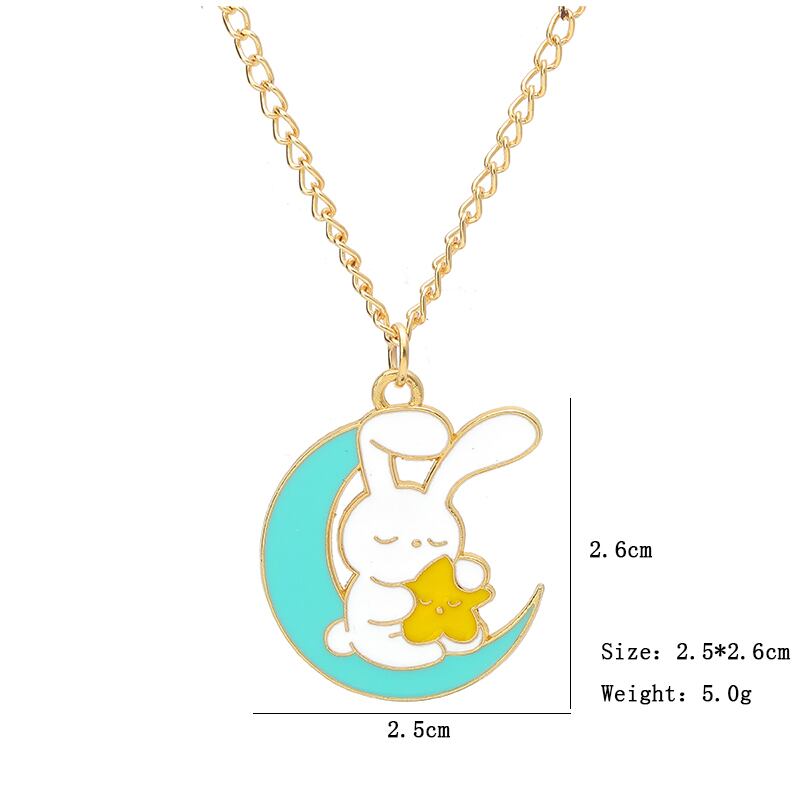 送料無料 クリエイティブバニーペンダントネックレスかわいい動物のウサギが月に座ってガールズパーティージュエリーアクセサリーギフト レース 大人ガーリー スウィート キュート カジュアル AE335677788901286079