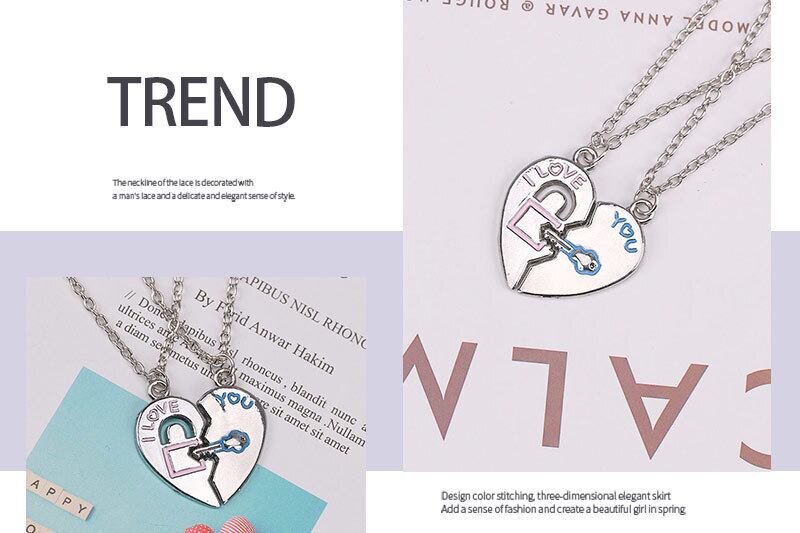 送料無料 2 ピース/セットの男性と女性のネックレスステッチ手紙ラブユーハート型のカップル合金ラウンドペンダントジュエリーギフト レース AE335677799914910350
