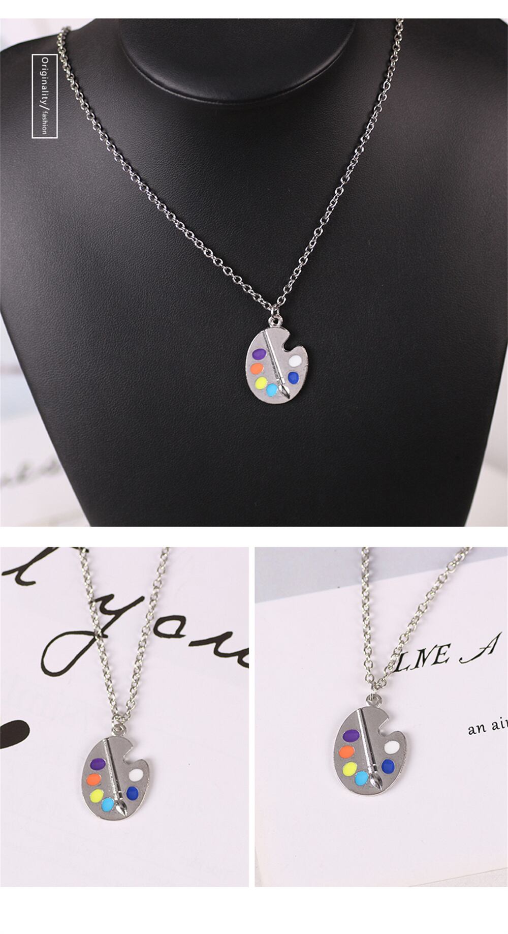 送料無料 DIY カラーペイントドリップ油絵プレート合金ペンダントネックレスチェーンの長さ 45 センチメートルジュエリークリスマスギフト レース AE335677725888831879